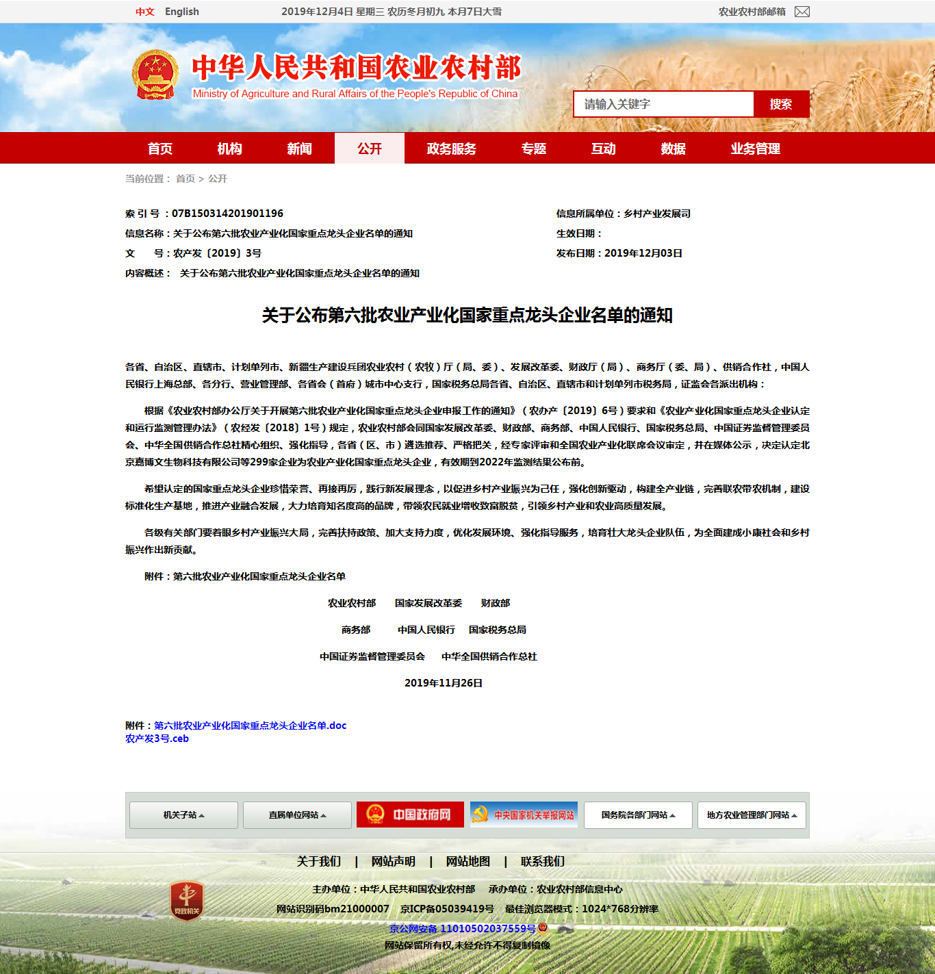 祝贺我公司获得第六批农业产业化国家重点龙头企业荣誉