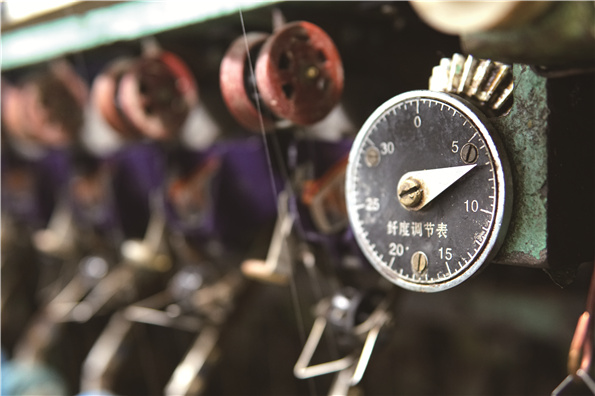 这天上午,由于热电厂供气管道故障造成供气不足,四个缫丝车间只好轮流生产,刘阳所在的二车间暂时停机。趁着这个档口,他拿起钳子、扳手等工具,开始逐个检查探索片,看看是否需要更换或维修。只见他手指轻轻一碰,发现有问题的地方,就在机台上面画个记号,一番熟练的更换或维修后,等机台再次开动的时候,寻着刚留的记号,就能方便、迅速地在众多绪头中找到刚刚更换或维修的那个,对维修结果进行再次确认。