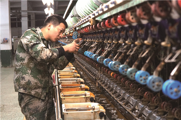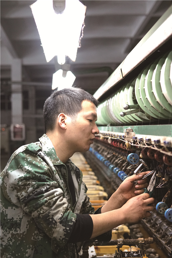 刘阳:刚进厂的时候,我对机器不怎么了解,经常会加班到深夜。记得有一段时间,车间有一组机械故障多,经常出现野条,挡车工也因此被罚钱,车间主任先后调了几个机修工,都没有很好地解决。后来主任让我去干,我告诉自己要抓住这个机会来证明自己的实力,于是我开始勤遛、勤看、勤摸索,很快我就熟悉了机器构造,摸清了每个机械部件的作用和特点,原本野条多、机械故障频出的局面慢慢得到扭转,我也获得了领导和同事的认可。2015年,机修工大调动,有一些人不愿意干了,车间人手不够,我是第一个一人看三组车的机修工。