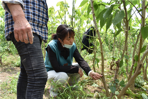 进入初夏,一场暴雨浇灭了炎热酷暑,却一点也未浇灭蚕桑办技术指导员们的工作热情。一大早,邵丽骑上摩托车赶去蚕农家中指导养蚕,路上经过一片桑园,正巧碰见村民在打桑叶。她快步上前,边示范边告诉蚕农,现在正值春蚕进入三龄期,可以从桑树的下面打三眼叶喂蚕,这样能够充分利用三眼叶的充足营养,不仅能促进桑树壮条生长,而且有利于桑园通风,减少桑叶发黄脱落。今年公司将加强桑园管理,制定奖励办法激励农户做好夏伐留拳、修剪细弱枝条、平稍除草等田间劳作,通过精细的桑园管理提高产叶量,增加蚕农亩产收益。除了技术员田间地头的示范讲解,蚕桑办还特意把激励措施录制成音频,在车顶安装高音喇叭,走街串巷地实施“入耳式”宣传。