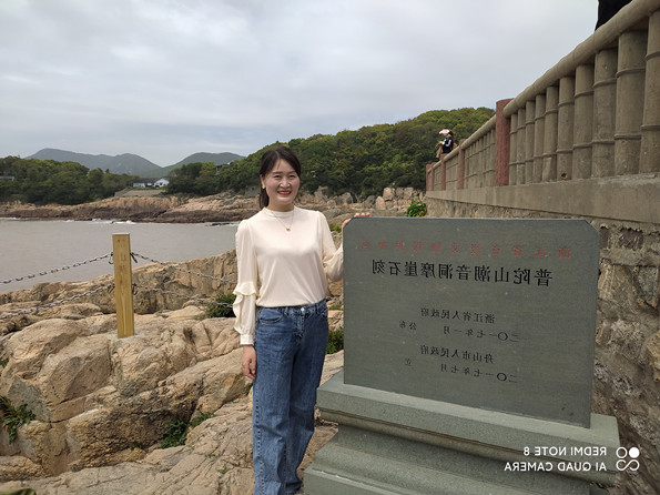 小岛南北狭长,面积约12.5平方公里。我踏上了碧绿的石阶,走向最有名的普济禅寺。一进门就看见了尊贵、善良、端庄、神圣的观世音菩萨。我跪在软垫上,十指合并,闭上双眼,低下头,两只手摊放在软垫上,虔诚地向观世音菩萨跪拜,最后庄重地站起身缓缓离去。接着我们来到佛顶山。这里有慧济寺、海天佛国崖、云扶石等景点。最后,我们在回来的路上观赏了海天一线的美丽大海。