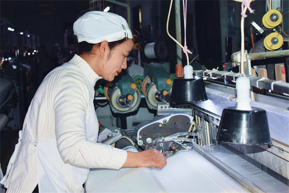 2018年,在外地打工的刘艳(在外地的纺织厂里,她开的是棉纺织机)经别人介绍来到安徽京九丝绸股份公司剑杆二车间工作。来之后,她发现公司环境优美、技术先进,不仅薪水高、待遇好,还提供食宿,立刻就喜欢上了这里。每天下班后,还能照顾家中的老人和孩子,她感到非常满意,就在心里暗下决心,一定要把织绸的技术学好,早日融入到这个集体中。