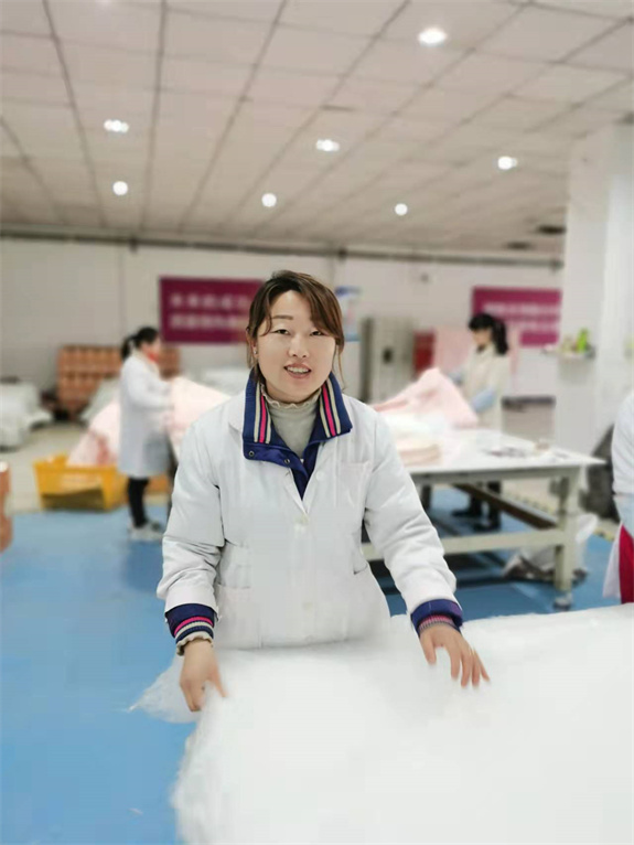 时间过得真快,不知不觉我来华诗雅蒂上班已经两年了。我是一名蚕丝被制作员,回顾这两年来的工作,我真切地领悟到工作的乐趣,忙碌而又紧张,快乐而又欣慰。在工作中,我感受到了领导对员工的热爱和关怀;感受到了同事之间的尊重、理解、沟通和合作。我们就像是生活在一个大家庭里,彼此都在为更好地建设这个大家庭而努力。