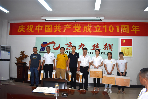7月1日,中共安徽京九丝绸股份公司党委隆重召开“庆祝中国共产党成立101周年”大会,参加活动的有公司党委领导、在岗党员和“光荣在党50年”的退休党员代表。会议由党委组织委员刘跃华主持。