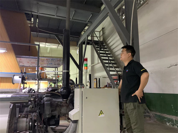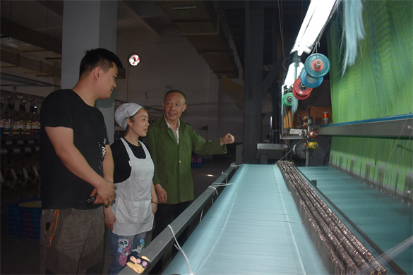常年的工作,让聂虎一直保持着这种习惯。他说,机器维修是一个慢慢积累、逐渐提升的过程,比如最早接触有梭织机时,打纬棒控制梭子来回摆动,如何保证机械运动时不飞梭是需要重点思考的问题;进入无梭织机时代,剑杆织机自动化程度高,能高效生产,公司刚引进剑杆织机时,如何装车、调节综框高度、调试侧导轨等,是每日的必修科目,从安装、调试到运行的每一个环节,他都极其用心地记着笔记,下班后仍仔细地琢磨,很快摸到了一些眉目;随着生产工艺的不断提升,在处理提花织机的故障时,又需要涉猎电路控制等方面的知识。“我感觉自己是随着公司的发展不断提升的。十多年了,从机械到电路,从零件更换到系统保养,我遇到什么问题就留心记录下来,有时候我没修好,别人修好了,我总是会虚心请教,直到自己也弄懂为止。”聂虎说,随着工作经验的积累,现在一块电路板中的元器件究竟控制哪个部分,他一看便知。