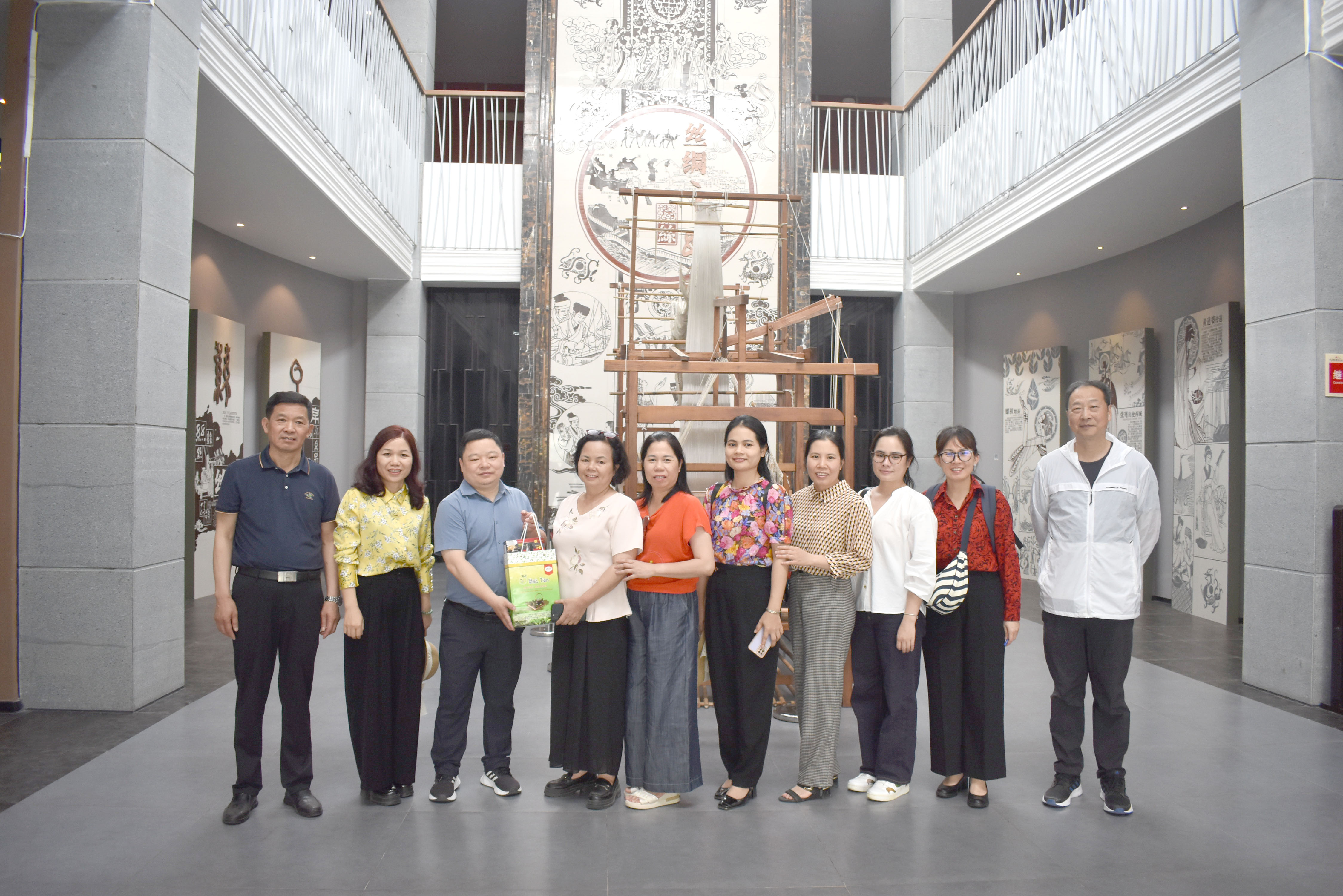 代表团随后参观了华夏丝绸博物馆,该馆以“中华五千年丝绸史”为主线,通过实物、文献及数字化技术还原了从养蚕缫丝到服饰织造的完整工艺链。馆内展出的汉代素纱襌衣复制品、明清织锦纹样及现代丝绸创新产品,生动呈现了丝绸文化的历史脉络。代表团对博物馆“丝绸+文化+旅游”的融合模式给予高度评价,认为其“为传统产业赋予了新的文化生命力”。