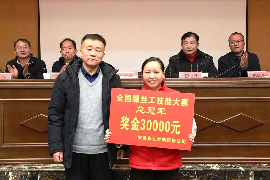 接下来,全国缫丝工技能竞赛总冠军崔珍珍、全国缫丝工技能竞赛穿瓷眼单项操作冠军许娟娟、特级技师聂虎、小改小革和合理化建议获奖者丁成飞分别作了精彩发言。公司经理班子成员为获奖人员颁发奖金及证书。
