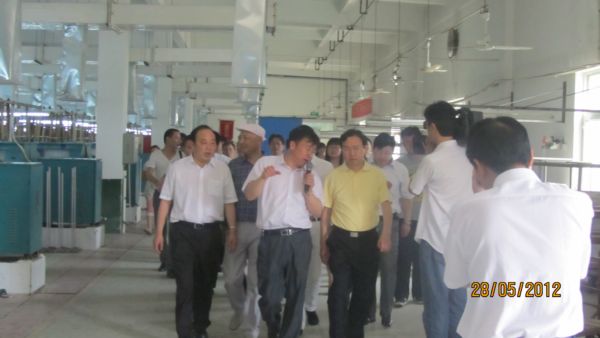 首先董事长马品德向各位领导、企业家莅临公司考察指导工作表示热烈的欢迎,并就公司的有关情况作了简单介绍。考察团一行在董事长的陪同下实地考察了公司的选茧、缫丝、复整、准备、剑杆等生产车间,饶有兴致地听取了董事长对相关生产流程的介绍,并对公司近年来所取得的成绩给予了高度的评价。
