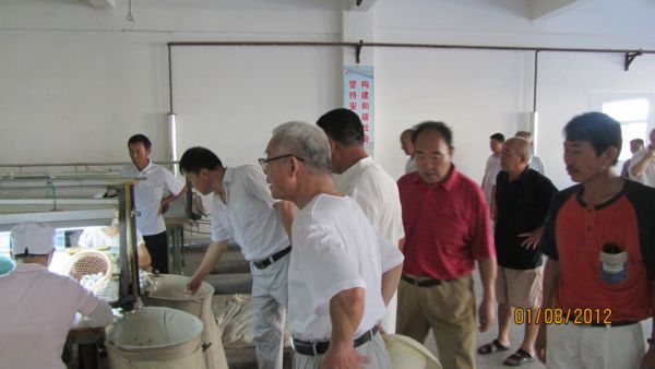 随后,离退休复员转业军人老领导、老干部在董事长马品德等领导的陪同下,顶着热烈的阳光,参观了选茧车间、缫丝车间、复整车间、准备车间、剑杆车间、锅炉房等。当看到那些一丝不苟、专心致志工作的一线员工及高技术含量的新产品时,老领导、老干部不时的啧啧称赞着,虽然热汗涔涔但目光一直摩挲在那些熟悉的原料、成品、机器上。