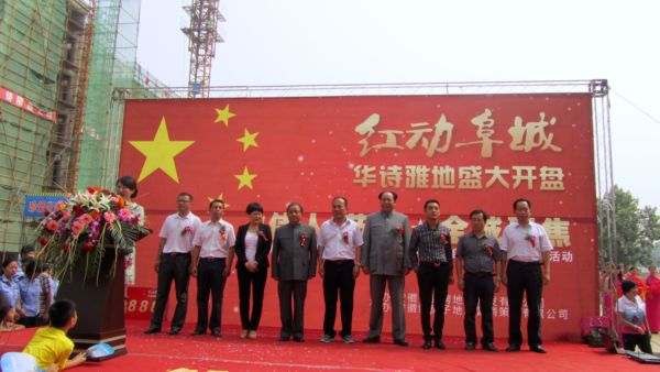 9月22日,秋高气爽,安徽京九丝绸集团旗下的安徽德源房地产开发有限公司推出的华诗雅地楼盘一期工程在万众瞩目中喜迎开盘盛典。是日,毛泽东、邓小平的扮演者东方子、董晓亲临开盘现场,将开盘盛典推向高潮。