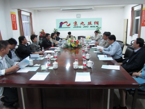 随后沈素琍一行来到二楼会议室进行了座谈。董事长马品德从公司的生产规模、管理理念到产品、产业结构与经营商业模式的调整转型及公司今后发展的方向等进行了简单与详细的汇报。其中重点讲到公司终端品牌“华诗雅蒂”的打造给公司的发展增添了十足的后劲,今后,在保持现有产业优势与规模的基础上,公司将更好地做强终端品牌,壮大栽桑养蚕,做大家纺服饰产业,努力缩短与同行先进企业的差距,为振兴民族传统产业做出我们企业应有的贡献。