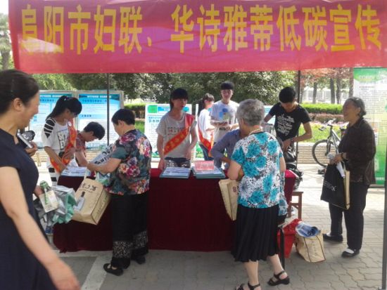 为了做好节能宣传周的宣传工作,6月15日上午,阜阳市政府在清河广场、颍州区政府在鼓楼广场分别举办了节能宣传周的启动仪式。华诗雅蒂作为低碳、节能减排活动的积极宣传者和践行者,携手阜阳市妇联,在活动现场发放节能宣传资料,向广大市民普及节能低碳知识,宣传“践行节能低碳,建设美丽家园”的理念。