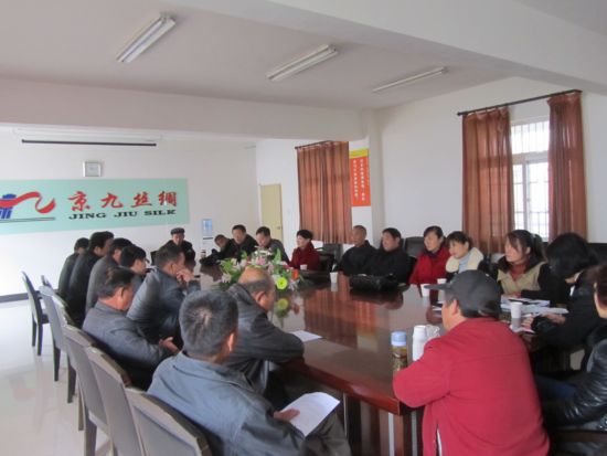 会议由蚕桑办主任汪晓飞主持,首先汪主任对今年秋季蚕桑生产作了详细、全面、深刻的总结,并针对养蚕过程中容易出现的问题给予详细分析。从发蚕种时应该注意的事项,桑叶中毒的原因,脓病爆发的原因以及今年秋季出现大面积蝇蛆病的原因,到理事们对待蚕桑事业认真、严谨、负责的态度,汪主任都一一举例说明,并对下一步的蚕桑工作计划及各理事的具体工作做了细致的部署、安排。而后阜南县蚕桑站站长刘国峰、颍上县蚕桑站站长侯翔宇、阜阳市蚕桑科科长孟庆杰分别作了发言,并对阜阳地区今后蚕桑发展的美好前景及如何更好地发展栽桑养蚕事业提出了宝贵的意见与建议。公司总经理李开典在讲话中说到,由于受高温天气的影响,秋季蚕茧的产量虽较春季有所减少,但质量丝毫不逊于外地蚕茧,无论是上车率、解舒、缫折还是其他各项指标都比较好。今年秋季优质蚕茧的收购价格超过26元/斤,这比全国任何地方的蚕茧价格都要高。公司多年来一直以全国最高价收购阜阳本地蚕茧,真正做到了最大让利给蚕农,从而坚定蚕农长期从事栽桑养蚕事业的信心。希望各位理事回去以后向广大的蚕农大力宣传此次会议精神,大力发展新桑园,并为即将开展的冬季栽桑工作做好充分的准备。