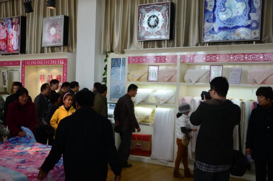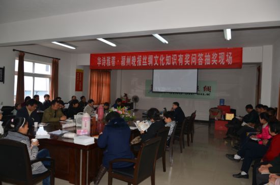 2013年11月16日上午,华诗雅蒂公司二楼会议室里热闹非凡,陆陆续续来自阜城市区和各乡镇的朋友齐聚于此参加华诗雅蒂有奖知识问答活动。据华诗雅蒂陶经理介绍,自2013年10月14日,公司在《颍州晚报》举办了丝绸知识有奖问答活动。活动开展以来,得到了广大参与者的支持,陆续收到了来自阜城各县、市区、乡镇广大参与者以寄信、短信、网络和送答案到店面的多种方式的热烈参与,反响甚广。经过公司对答案的认真初选,最终有108位脱颖而出有资格参与到最后的抽奖活动中。 活动现场周经理向消费者介绍了中国传统丝绸文化,普及宣传丝绸相关知识,对“华诗雅蒂”品牌优势进行了讲解说明。并带领现场活动人员参观公司各个生产车间的工作流程,在现场工作人员的引导下活动人员参观了生丝的整个生产过程,最后到蚕丝被生产车间,观看了蚕丝被的拉制过程,参观的朋友们更是惊叹于蚕丝被的柔滑之美,对真丝绸产品的特性有了更深的了解,在展厅,大家更是深受华诗雅蒂产品魅力的感染,赞叹丝巾、件套的精妙和色彩绚丽,赞赏蚕丝被的柔软和舒适。 随后活动进行了现场抽奖活动,在华诗雅蒂周经理的讲话中,大家对“华诗雅蒂”有了更进一步的了解,接着到了瞩目的现场抽奖环节,有数名幸运儿分别获得了一、二、三等奖。现场的朋友们也都领到了公司赠送的精美丝绸礼品。