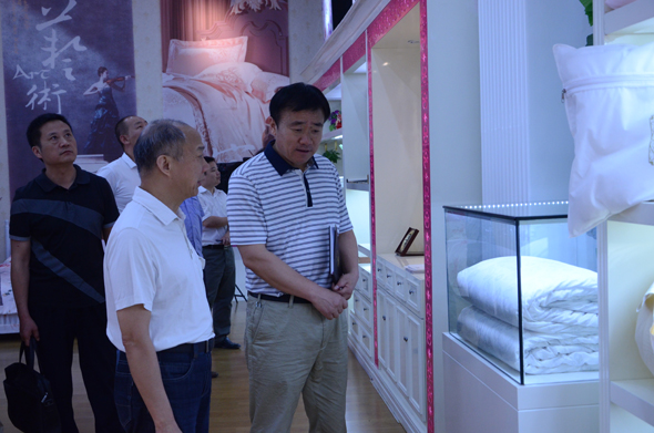 亓主任一行在马董事长的陪同下,首先参观了华诗雅蒂产品展示厅。代表着高端生活品质且引领时尚潮流的华诗雅蒂真丝系列产品让亓主任一行产生了浓厚的兴趣,纷纷伸手触摸、亲身感受真丝产品带来的丝爽顺滑,并啧啧称赞京九丝绸在马品德董事长的带领下取得的迅速发展。