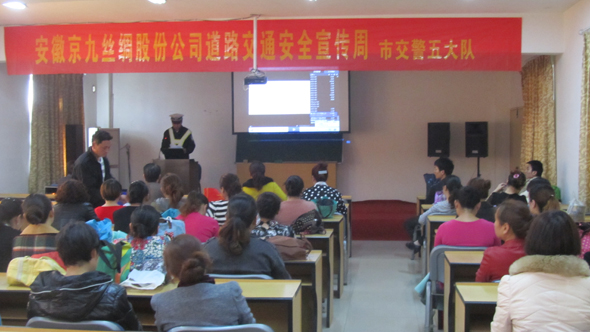 市交警五大队走进京九丝绸为员工宣讲道路交通安全知识