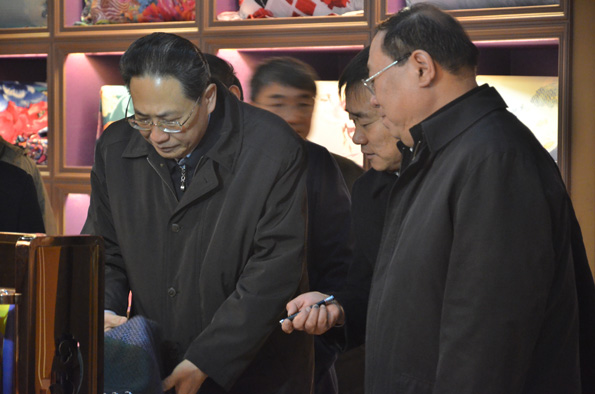 在观看公司产品展览展示后,李锦斌省长鼓励企业重创新、树品牌、扬文化,努力发展成为国内外丝绸产业领域更具竞争力的一流企业。