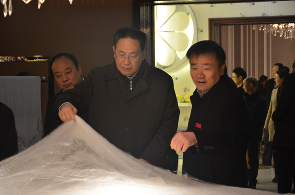 2016年1月7日安徽省委副书记、省长李锦斌带领省政府相关部门来到华诗雅蒂丝绸文化产业园调研丝绸龙头企业发展情况,阜阳市委书记于勇、阜阳市委副书记、市长李平陪同、华诗雅蒂董事长马品德陪同参观。