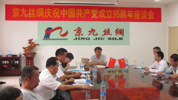 红色的七月,是我们中国共产党成立九十五周年。为庆祝党的华诞,7月1日下午在二楼会议室,公司党委书记马品德,党组成员李开典、刘跃华、杨帆、邹焱,党委副书记董治朝,华诗雅蒂副经理周炎,党支部书记唐贺强、左然生、宛俊峰,退休党员李广珍、朱巨荣、陈彩云以及各车间、科室的党员代表近50人欢聚一堂,重温党的光辉历程,切实肩负起新形势下党员的神圣使命。