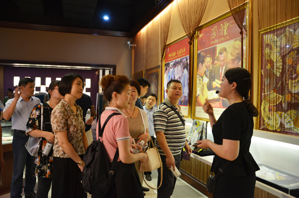 讨论会结束后,领导一行来到华诗雅蒂▪华夏丝绸博物馆参观指导,各位领导在仔细聆听丝绸文化、丝绸历史的介绍,了解现代丝绸产品工艺,公司概况后,就行业现状进行深入沟通讨论,并对华诗雅蒂的理念、现有成就以及将来的发展等给予了高度评价和肯定。