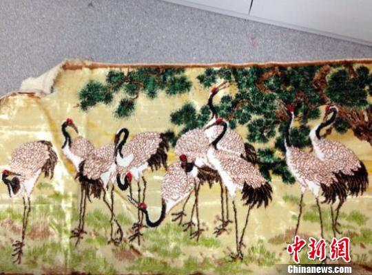 图为:国画家陈之佛的十鹤图(丝织)。 中丝博供图 摄
