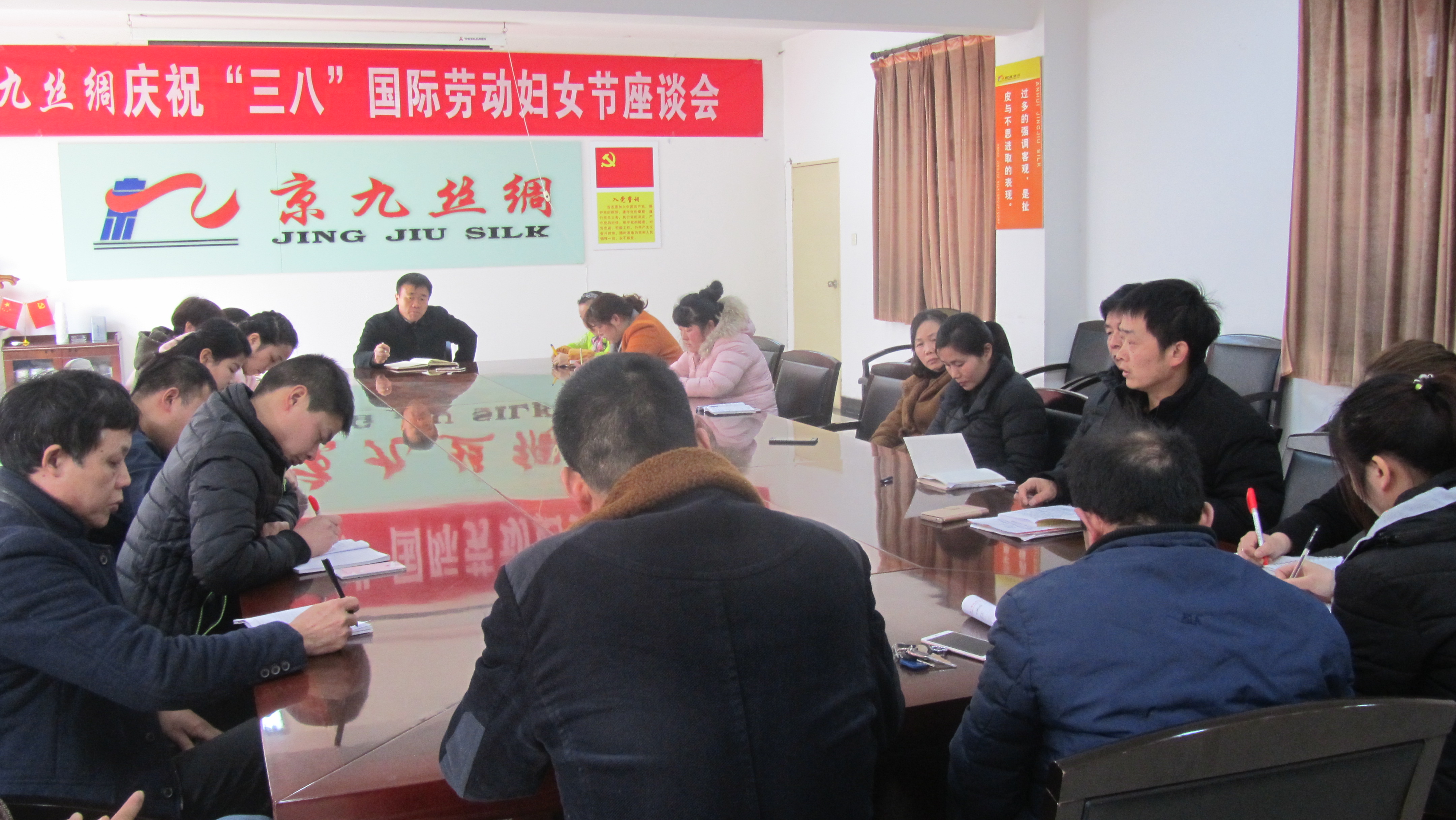 会上宛主任对马董事长在百忙中参加本次会议表示衷心地感谢,对每位通讯员放下工作赶来开会表示诚挚地敬意,并一再感谢每一位通讯员多年来对月刊的关心与支持!他指出我们独特的企业文化之一——《京九丝绸》月刊在宣传企业的文化建设,助推企业精神文明建设、鼓舞和激励员工工作士气上有着不可替代的作用,这与通讯员多年如一日坚持积极踊跃地投稿是密不可分的。而后他对年底通讯员投稿评比、奖励一事作了几点说明,并对如何更好地做好2018的宣传报道工作提出了具体要求:①处理好岗位工作与通讯员职责之间的关系。②加强学习,不断提高个人综合素质。③加强沟通、交流,互帮互学、共同提高。④在注重正能量报道的同时,不忘抨击违背车间的生产、管理及阻碍企业发展的阴暗面。
