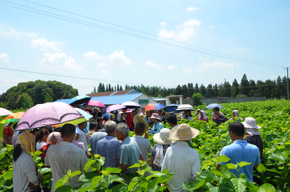 刘苗苗/编辑室 为全面普及新蚕农栽桑养蚕技术,保障蚕农稳产、高产,并助力政府推动农村产业转型,实现蚕农的“增收致富”梦。为期十天的蚕桑技术培训于7月14日在公司蚕桑基地耿棚如火如荼地开展起来。公司经理助理汪晓飞、蚕桑办副主任孟宪丽给来自阜阳、颍上、临泉、阜南等地区的蚕农近二百人进行了系统的养蚕技术培训。 经理助理汪晓飞、蚕桑办副主任孟宪丽分别围绕养蚕的基础知识,消毒、上蔟省力化等养蚕关键技术、桑树的栽培与管理及病虫害防治、蚕病防治及大棚的搭建等方面进行了全面、耐心地讲解。本次培训采取理论与实践相结合的教学方式,一方面由汪经理、孟主任针对养蚕的相关技术要点进行全面的讲解,播放相关的养蚕技术视频,并在培训过程中针对蚕农提出的问题进行耐心的答疑解惑,另一方面让蚕农亲自动手采摘桑叶、亲自养蚕、亲眼看小蚕室、大蚕室,亲身与老蚕农面对面交流技术。 虽然烈日炎炎,但此次参加培训的蚕农个个不畏酷暑、热情高涨。每天早上六点多就陆陆续续有蚕农在培训室门口等候,中午更是一吃完饭就赶紧去占一个靠前排的位置。技术员骨干刘国军、徐强对养蚕的后勤保障工作尽职尽责地忙碌着。蚕农们表示通过此次开放式养蚕技术培训,让他们打消了不懂技术的忧虑,坚定了养蚕的决心与信心。随着越来越多的老蚕农的榜样带头作用及强大的京九丝绸的技术支持与收购保障,越来越多的人愿意加入栽桑养蚕的队伍中来,蚕农实现“绿色环境、更高收入”的愿望指日可待。 “蚕农有时节,田野无闲人。”相信经过这次颇有成效的技术培训、指导,阜阳及周边地区的蚕桑产业必将迎来长足的发展。