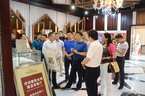 宛俊峰/办公室主任 中共内蒙古自治区赤峰市市委政策研究室主任崔景峰一行二十多人,在中共安徽省阜阳市市委政策研究室有关领导的陪同下,于2018年9月8日上午莅临安徽京九丝绸股份公司指导工作。 安徽京九丝绸股份公司董事长马品德向各位领导详细地汇报了企业的生产、经营情况以及企业未来的发展规划。中共内蒙古自治区赤峰市市委政策研究室各位领导对安徽京九丝绸二十多年来所取得的成就给予了充分的肯定,对京九丝绸未来的战略规划提出了许多宝贵的建议。 随后在马董事长的带领下,各位领导兴致勃勃地参观了华夏丝绸博物馆。在听取博物馆解说员的详细介绍后,赤峰市市委政策研究室主任崔景峰等领导都赞叹中国丝绸历史悠久,文化博大精深,此行收获很大。 最后,公司董事长马品德对中共内蒙古自治区赤峰市市委政策研究室各位领导给予我们工作指导表示由衷的感谢,并表示三天内,西藏山南市、内蒙古自治区赤峰市相关领导都对安徽京九丝绸股份公司给予了特别的关注,这充分说明了习总书记“一带一路”的战略对我们丝绸企业产生了深远的影响。作为丝绸企业,我们要抓住机遇,趁势而上,提升企业的竞争力,确保企业的可持续发展,同时要大力弘扬中国的丝绸文化与宣传丝路精神,让更多的人了解中国丝绸,增加对丝绸产品的需求,推进“一带一路”战略的实施。 安徽京九丝绸股份公司办公室 2018年9月8日