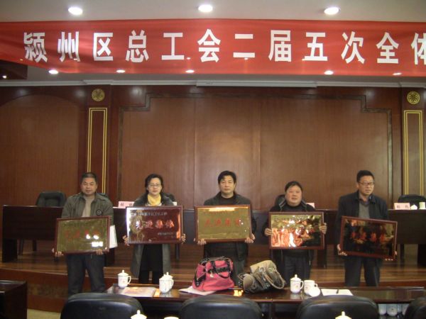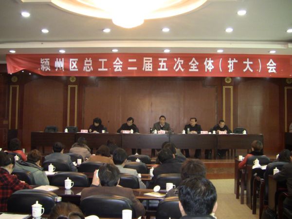 2011年3月18日上午,阜阳市颍州区总工会举行了二届五次(扩大)会议。参加此次会议的人员有颍州区委副书记张书平、阜阳市总工会副主席陈华东、区总工会主席张彪、副主席杨东升、原区总工会主席张丽以及各乡镇、街道工会、区直有关单位工会、基层工会。我公司工会主席兼办公室主任葛炯参加了此次会议。