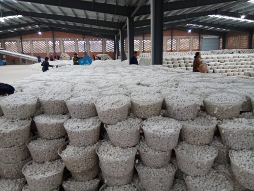 收来的优质蚕茧堆满了各个仓库,为华诗雅蒂之后的生产提供了原料保障。