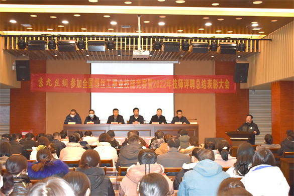 公司董事长马品德发表重要讲话。他首先代表公司对区工会领导大力支持公司评聘技师活动表示感谢,并对付出辛勤汗水、在工作岗位及全国缫丝技能大赛中获得优异成绩的员工表示热烈的祝贺。他指出,公司一如既往地开展劳动竞赛活动,锻炼出了一支懂理论、精技艺的高水平员工队伍。在全国大赛中取得优异成绩,既展现了京九丝绸的企业风采,又体现了每一位员工敬业爱岗、对技术精益求精的孜孜追求。他最后强调,虽然现在市场形势严峻,但我们充满信心,在员工们高昂的热情、饱满的干劲和扎实的工作成绩下,一定会克服困难,稳健发展。