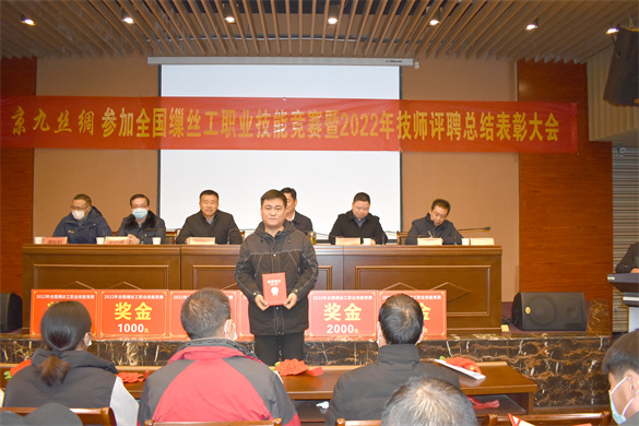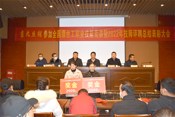 接着,公司德源织造系统职工代表团团长杨帆宣读了《关于聘任技师的通知》和《关于奖励参加全国纺织行业缫丝工职业技能竞赛相关人员的决定》。在热烈的掌声中,各位领导为获奖员工颁发奖金和聘书。